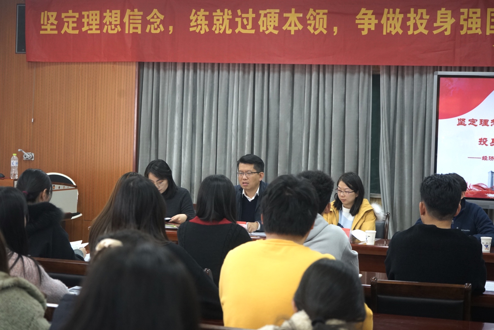 为积极响应学校机关处级干部联系学生班级通知精神,坚持以学生为本理念,深入了解学生需求,推动立德树人根本任务落实落细。1月8日下午,经管学院2020级物流管理专业期末交流会于经管楼504会议室举行,党委(校长)办公室副主任步德胜出席座谈会并与同学们亲切交流。2020级物流管理专业班主任王艳婷、2020级辅导员及城市管理专业全体同学参加,座谈会由2020级辅导员付凯主持。