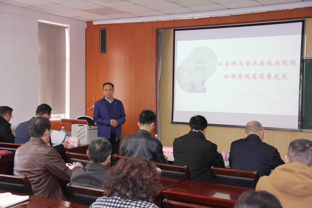会上,院长李勋来作《以学科专业建设为统领,加快学院高质量发展》的报告。李勋来从专业设置、学位点建设、师资队伍力量等方面介绍了经管学院基本情况,以各系业绩分布、各类业绩占比等数据为支撑分析上聘期教学科研状况,并深入剖析学科专业建设的瓶颈,从四个方面对未来工作方向做出规划。