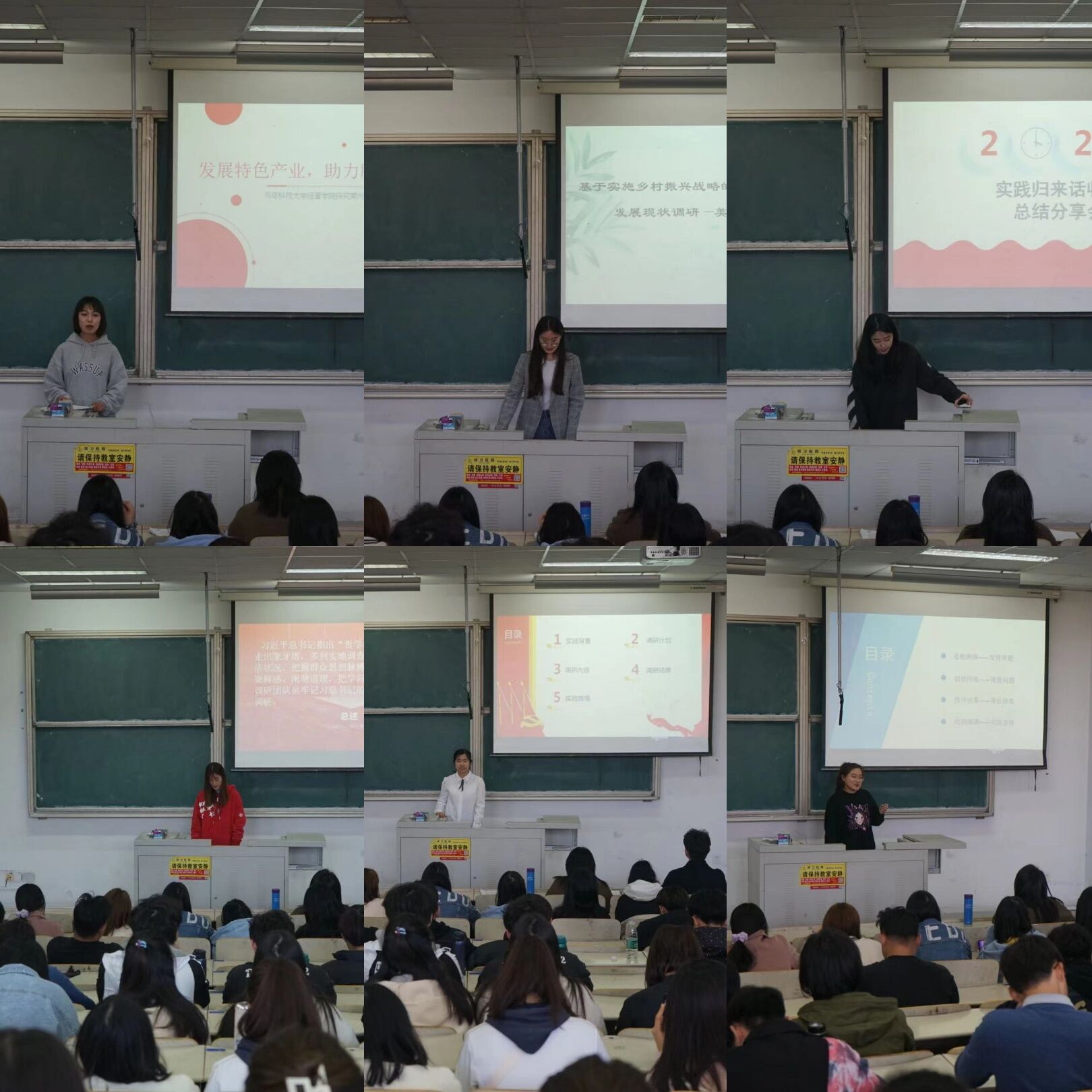 经管学院此次寒假社会实践活动参赛队伍共159支,参与学生数达八百余人。分享会由经管学院各年级推选出的优秀团队或个人进行汇报总结和经验分享。会上,各代表展示了寒假社会实践的调研成果,开展“红色专项”的实践团队通过查阅资料、实地勘察、线上交流等形式追溯红色记忆,体悟红色精神文化,并结合“学四史”和热点话题进行深入交流学习;参与“青鸟计划”的实习学生,通过问卷、走访等形式了解国情,融入时代,真正做到"深入挖掘热点、广泛开展调研、着重提升质量",植根家国热土,砥砺成长担当。最后,2020级辅导员付凯老师总结指出,社会实践对大学生而言意义重大,应当通过此次优秀实践项目的分享,借鉴身边周围同学的思考方式,明晰方向,廓清路径,为以后的社会实践打下坚实基础。