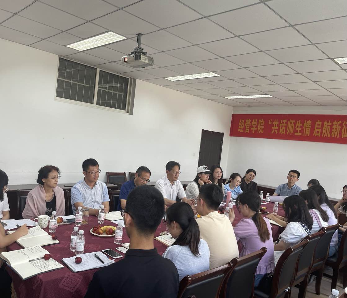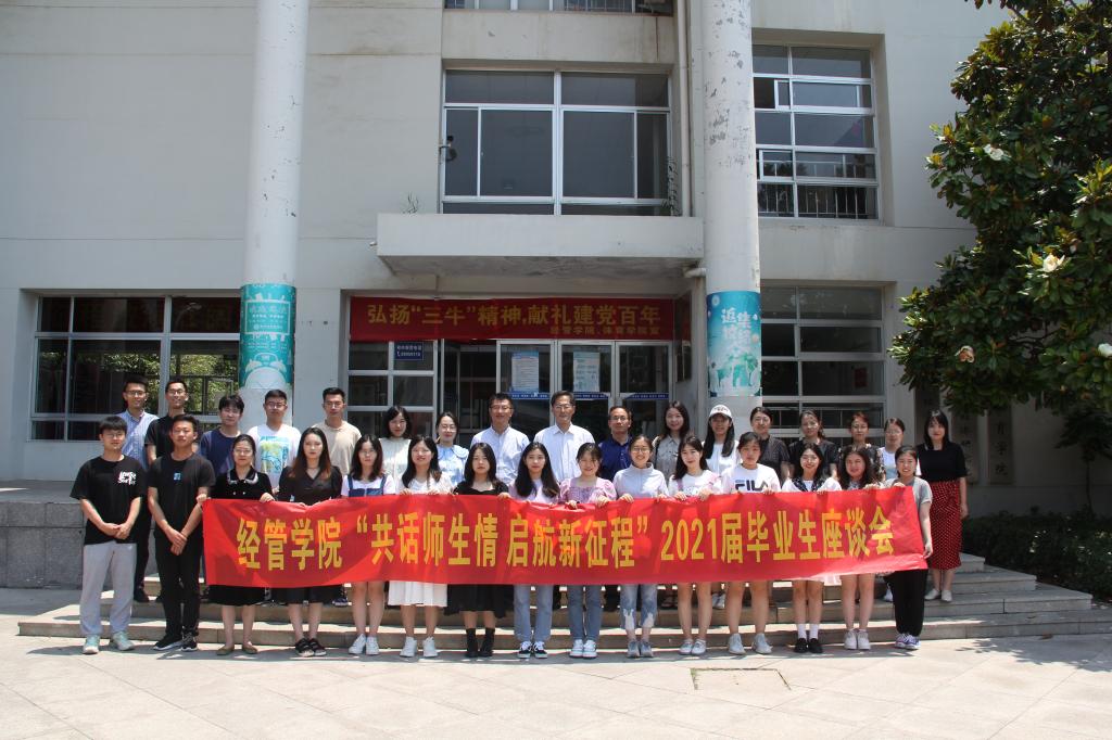 为进一步增强毕业生追寻梦想、立志成才的责任感和使命感,同时广泛听取学生对学院发展的意见建议,6月23日下午,经管学院“共话师生情 启航新征程”2021届毕业生座谈会在经管楼415会议室举行。学院党委书记李德成、院长李勋来、党委副书记兼副院长刘跃宁,各系教师代表、毕业班辅导员以及各专业优秀毕业生代表共同参加了此次座谈会。座谈会由2021届本科生毕业班辅导员张显全主持。