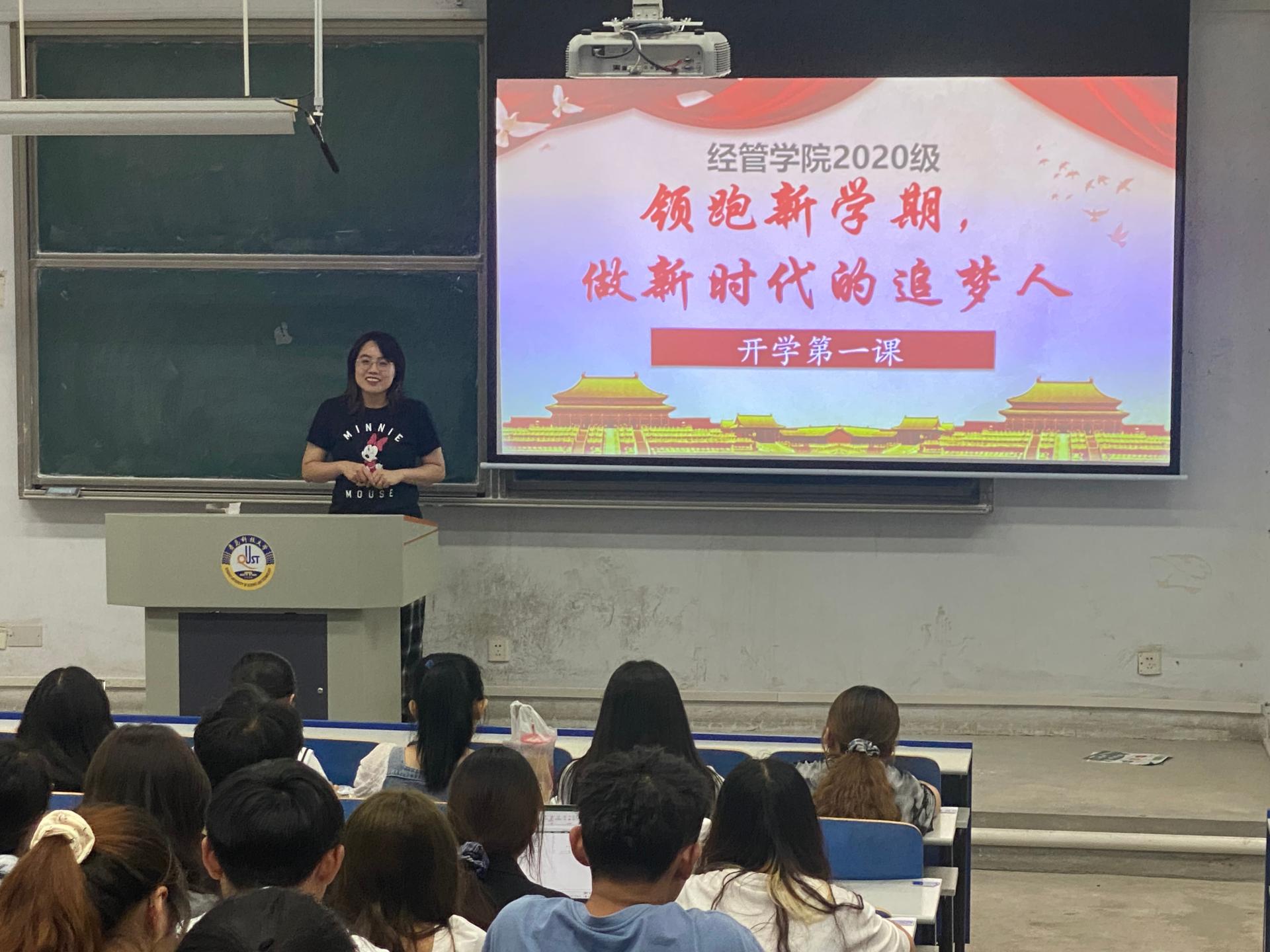 为引导2020级学生强化思想、规范品行、巩固学业、挖掘潜力,在新学期凝聚拼搏力量,以更加饱满的精神与奋进的姿态尽快适应大二的学习、生活节奏,9月8日晚,经管学院2020级分专业召开“领跑新学期,做新时代的追梦人”开学第一课暨新学期教育大会。会议由2020级辅导员付凯、王安琪主持,2020级全体学生参加了此次会议。