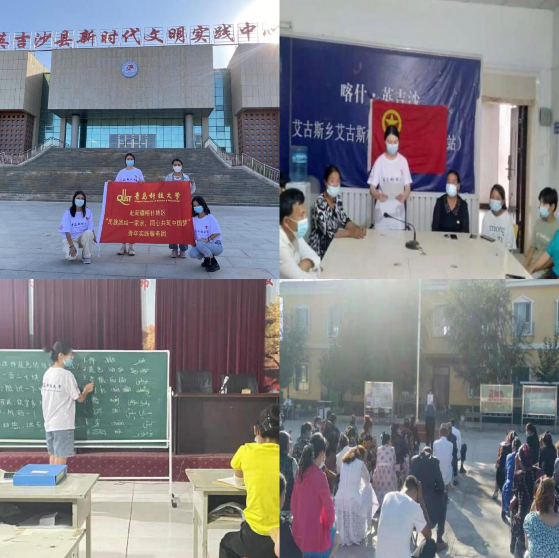 中华民族一家亲,同心共筑中国梦。为凝聚以爱国主义为核心的民族精神,增强中华民族共同体意识,经管学院引导学生在暑期社会实践中了解国情社情民情、深化民族团结进步教育,进一步推动党史学习教育走深走实,浇筑民族团结的石榴之花。”赴南疆调研近三年乡村振兴新政策实践团“实地调研南疆地区新疆农业现代化建设问题,探索减少新疆各地区发展不平衡问题的可行性。赴喀什地区团队“民族团结一家亲,同心共筑中国梦”青年实践服务团在喀什各地组织当地居民进行“红歌嘹亮" 红歌学唱、党史及中国共产党的带领下新疆发展史宣讲科普、"影入人心"红色电影观赏等活动,积极推广普通话、进行国语教学,并针对喀什地区民风民俗及旅游建设方面做出问卷调查,多措并举提高了少数民族的国家认同感和归属感,也更加深入理解了习近平总书记关于少数民族的重要讲话,鼓舞青年一代以国家发展为己任,坚定理想信念、厚植爱国情怀,为民族团结、全党全民族共同发展贡献青春力量。