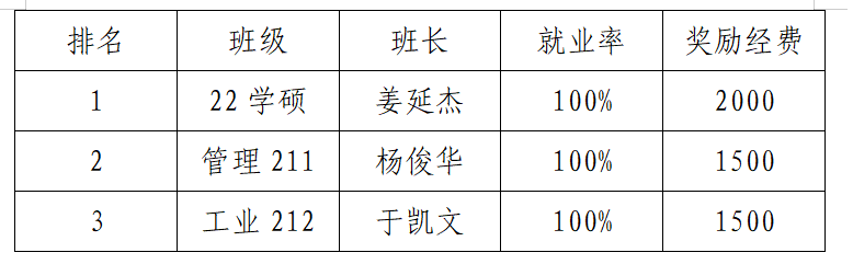 根据青科大经管字〔2024〕14号《德赢vwin体育官网登录就业工作激励办法(试行)》的考核奖励要求,现对学院毕业生班集体奖励公示如下: