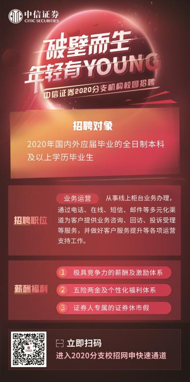 1、中信证券面向2020届毕业生持续开展业务运营岗招聘,专业不限。